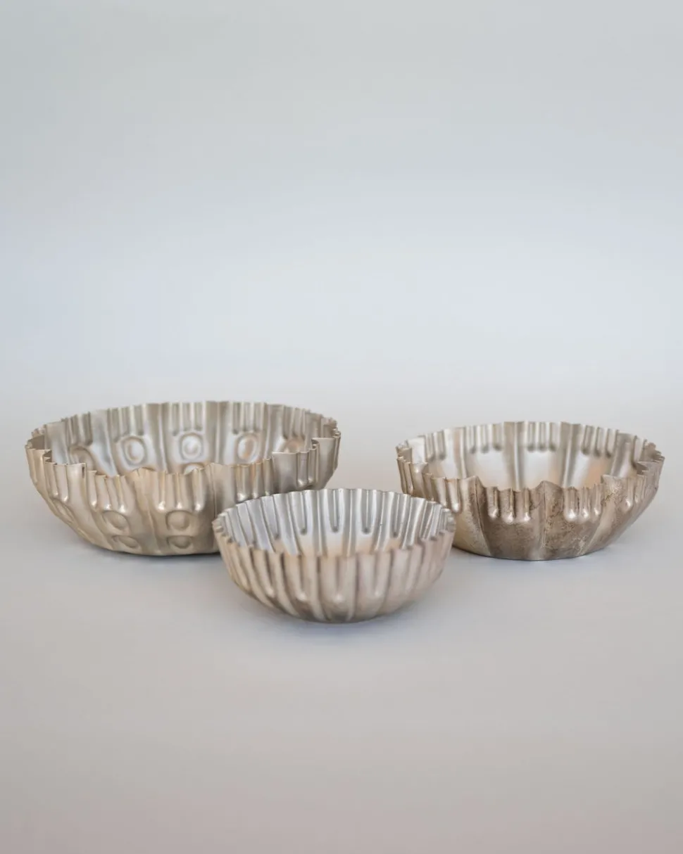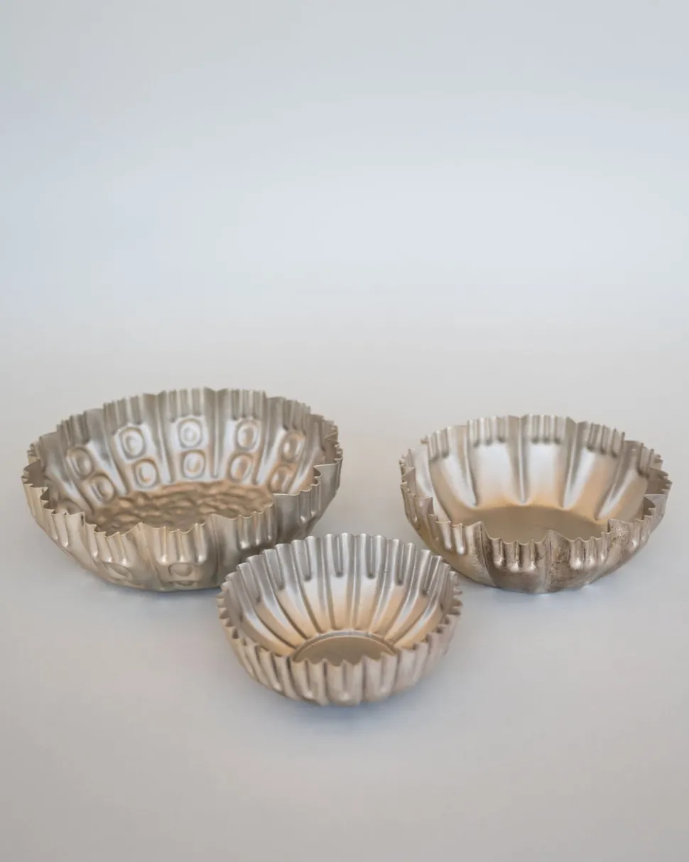 - Decorative Metal Fluted Bowls w/ Design