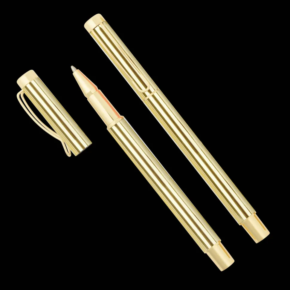 Elevate your everyday writing with this coordinated two-pack of gold pens. Designed for a consistently smooth writing experience, these ballpoint pens glide effortlessly across the page, making them perfect for note-taking, journaling, or signing your most important documents. The sleek gold foil finish adds a touch of sophistication, while the medium point delivers precise, reliable lines every time. Add some shine to your office supplies at home, work, or school.
