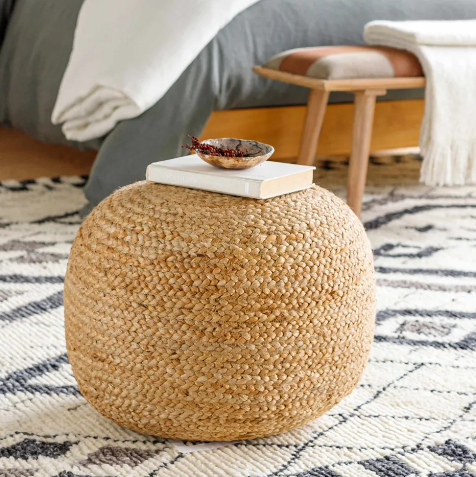 About: Jute round pouf – a natural fiber ottoman that is both stylish and sturdy. This versatile piece can be used as an extra seat or a footrest. The wicker jute construction is smooth and comfortable. The natural colors will blend effortlessly with your existing decor, and the round shape makes it easy to move around as needed.