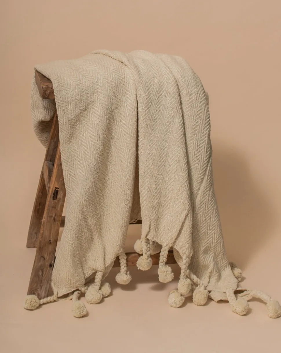 60″L x 50″W Cotton Throw w/ Braided Pom Pom Tassel