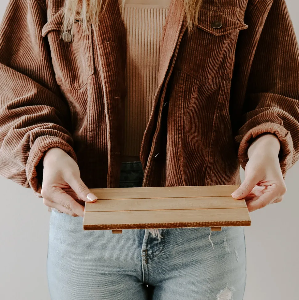 Our Natural Wood Rectangular Tray is the perfect addition to your modern kitchen, bathroom, and home. The Paulownia wood tray gives your countertops an elevated look while holding everything in style from our signature scented candles, soap dispensers, reed diffusers, and more! Add these to your rustic, modern, or farmhouse style home to complete your decor.