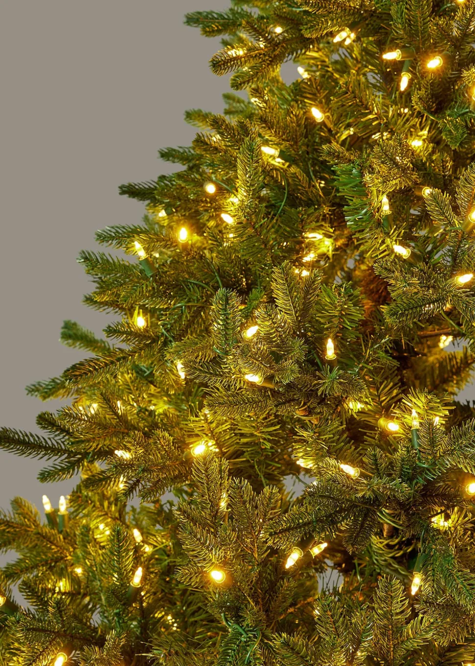 Showcased in Livingetc, our no-fuss Faux Christmas Tree inspired by nature’s winter forest is the decoration you need for elevating your holiday season to new heights of enchantment! Standing at 7.5 feet tall, this artificial holiday tree was crafted with care and designed to bring the magic of Christmas into your home. Featuring lush, dense branches that mimic the charm of real evergreens, this amazingly realistic Noble Fir Christmas tree is the embodiment of festive elegance and sheer convenience. The permanent LED bulbs will never need to be replaced and feature extra safety features to ensure a worry-free celebration. Illuminate your home with the festive spirit of the season.