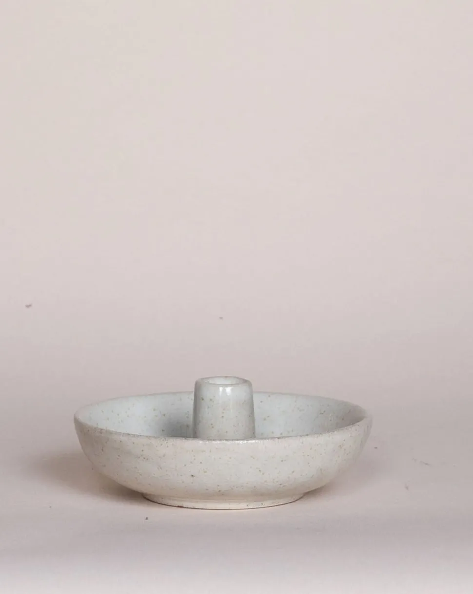 5″ Round x 1-3/4″H Stoneware Dish w/ Toothpick Holder, Reactive Glaze, White (Each One Will Vary)