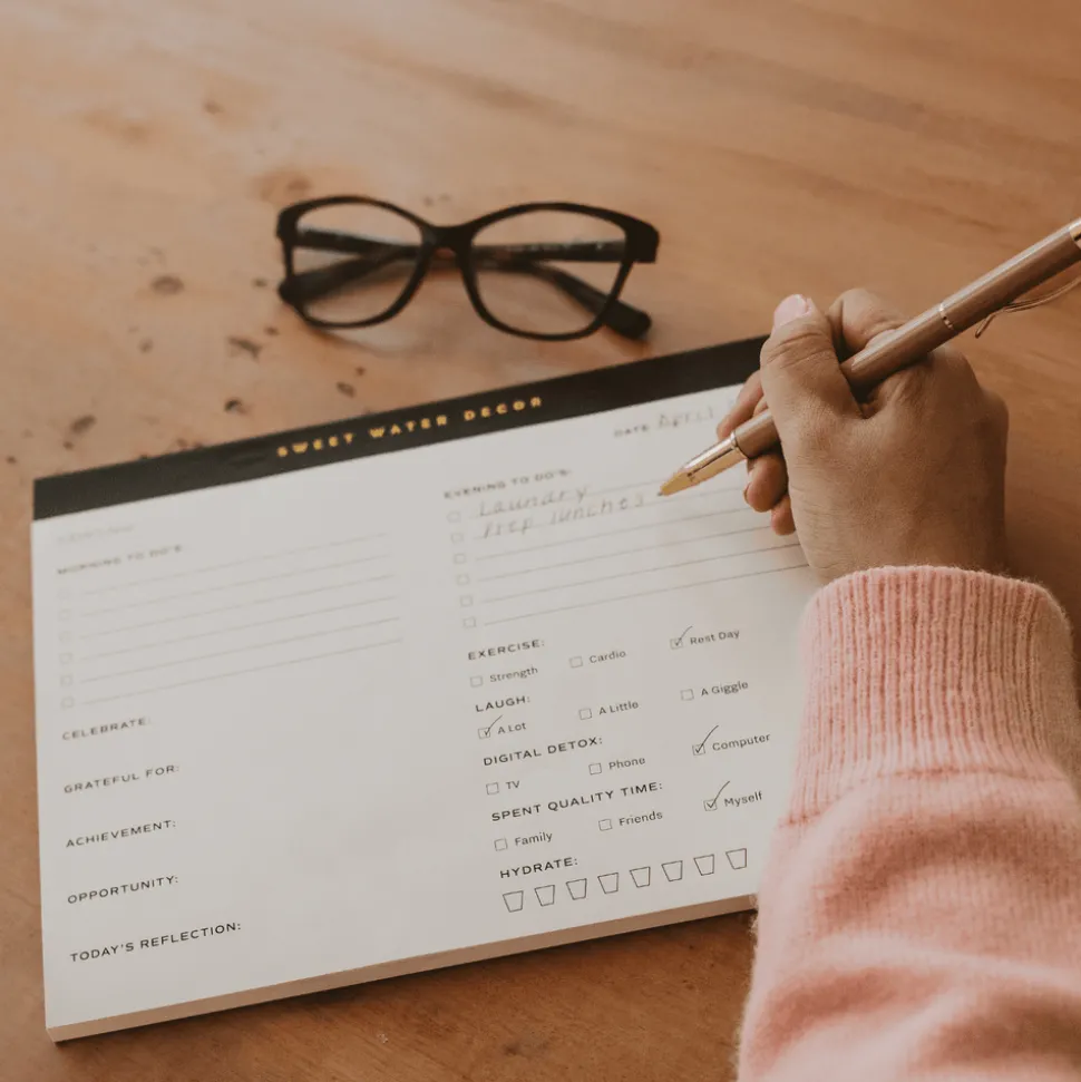 Whether you keep it on your office desk, bedside table, or kitchen counter, this notepad is the perfect blend of productivity and self-care – a simple, elegant way to check in with yourself every day.