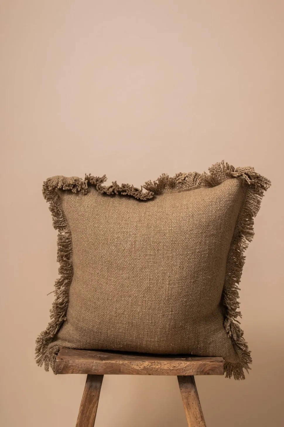 - 18″ Square Woven Cotton Blend Pillow w/ Fringe