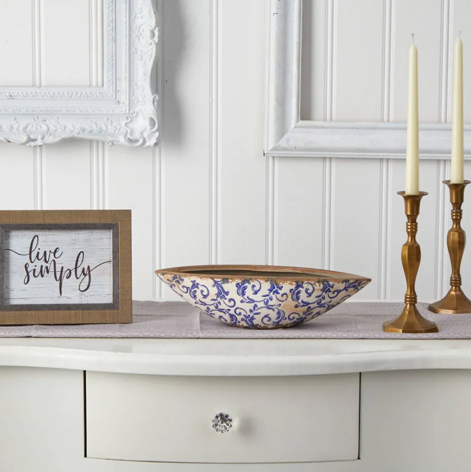 13” Tuscan Ceramic Blue Scroll Decorative Bowl – Sweet Water Decor