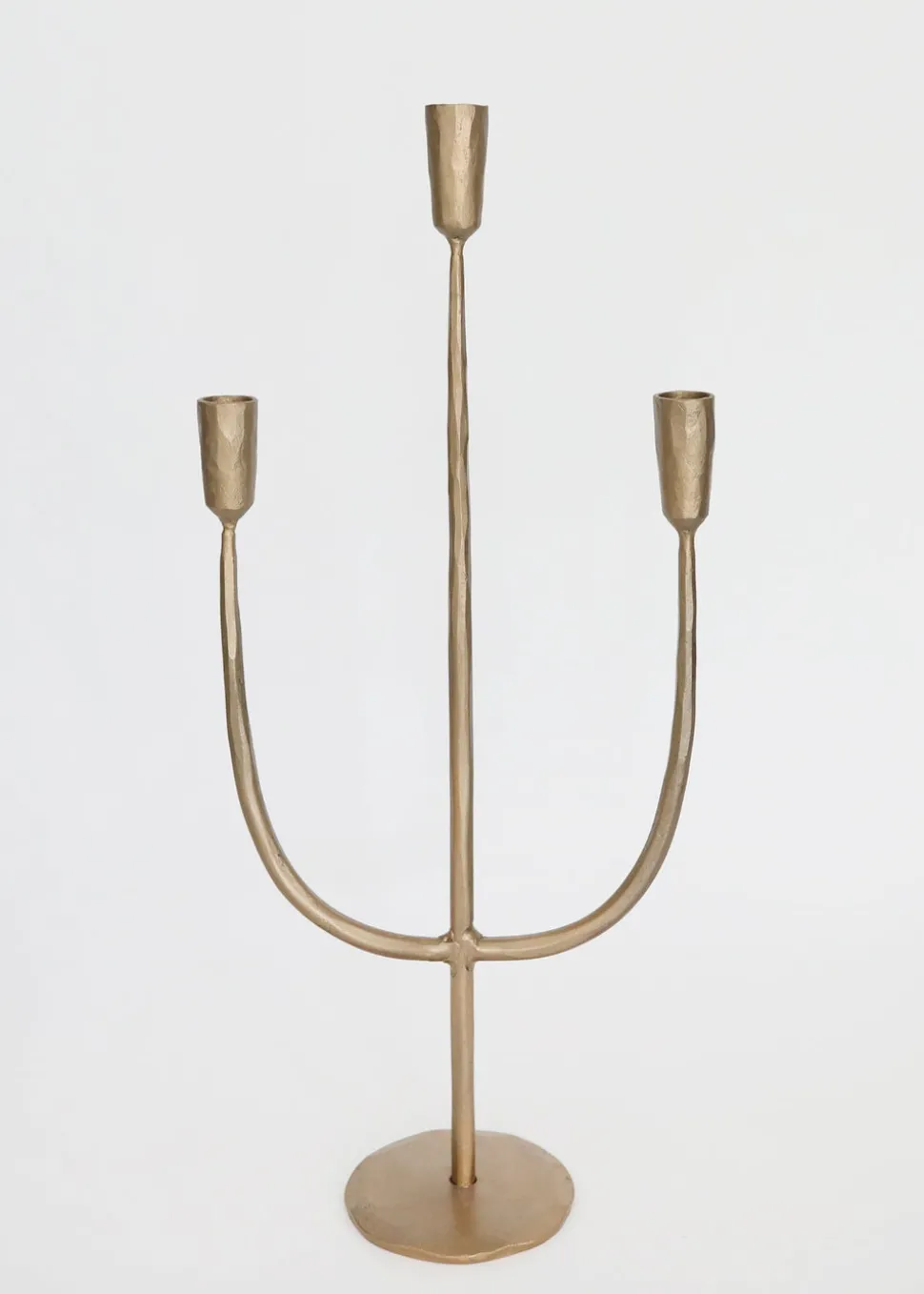 Find candle holders for your table centerpieces like this beautiful metal candelabra with an antique gold finish. It has a simple, classic look that elevates both wedding tablescapes and holiday decorations.