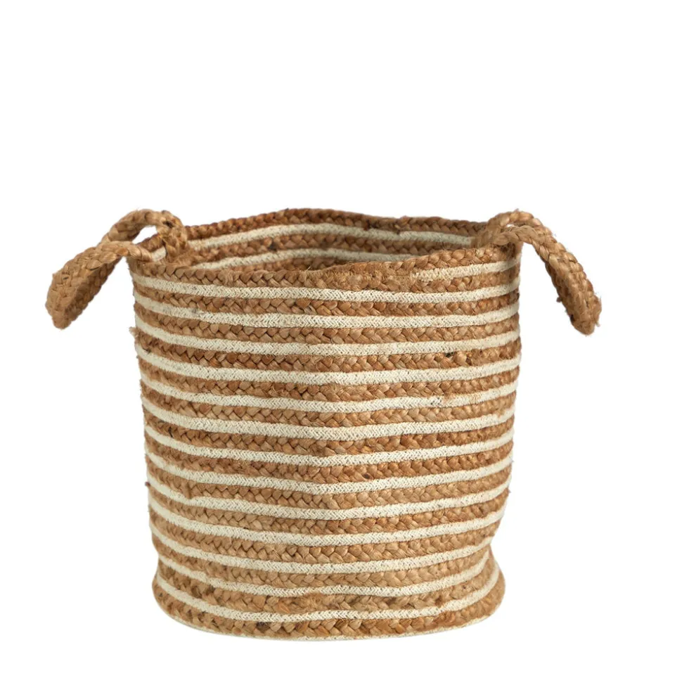 Basket Natural Cotton and Jute, Handwoven Stripe with Handles
