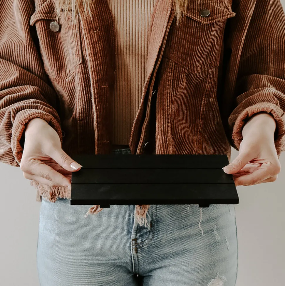 Our Black Wood Rectangular Tray is the perfect addition to your modern kitchen, bathroom, and home. The black Paulownia wood tray gives your countertops an elevated look while holding everything in style from our signature scented candles, soap dispensers, reed diffusers, and more! Add these to your rustic, modern, or farmhouse style home to complete your decor.