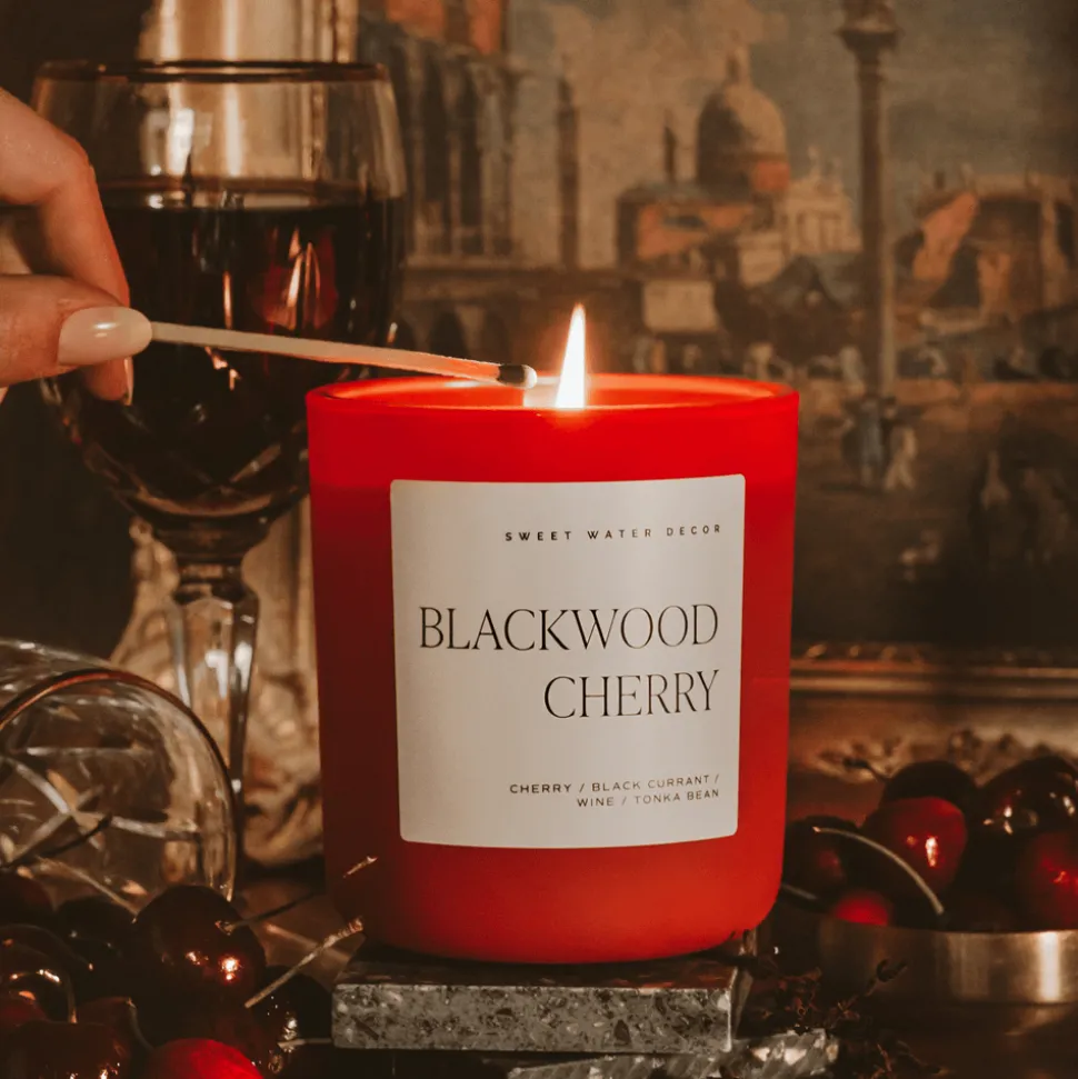 Wrap yourself in the richness of Blackwood Cherry, a fragrance that feels both indulgent and irresistibly cozy. Opening with the lush sweetness of ripe cherry, it’s balanced by the tart edge of black currant. Velvety notes of red wine weave through, while warm tonka bean lingers at the base, grounding the scent in comfort. Sophisticated yet inviting, it’s the perfect fragrance for evenings when you want to slow down, savor, and sink into the moment.