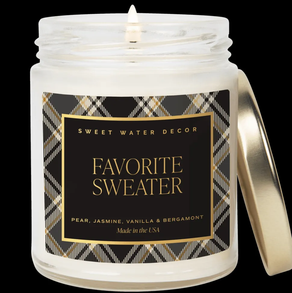 Crisp Autumn air, a favorite knit sweater, and the soft glow of candlelight — set the scene with our Favorite Sweater candle. Cozy notes of pear, vanilla, and bergamot fill your space with effortless warmth, perfect for crisp evenings and quiet mornings. Its grey, black, and gold plaid design adds a timeless, tailored touch to your Fall decor.