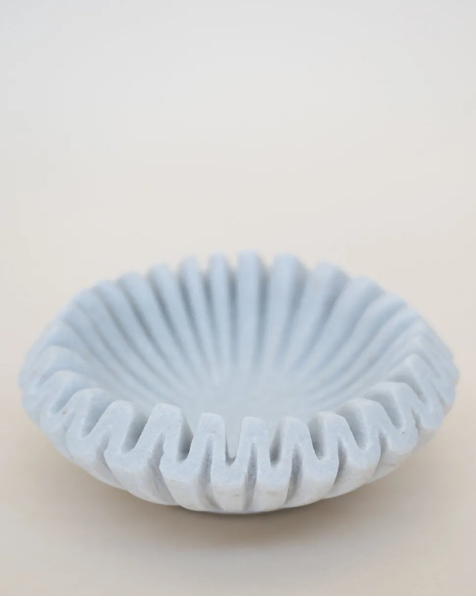 7″ Round x 2-1/2″H Marble Fluted Dish, White