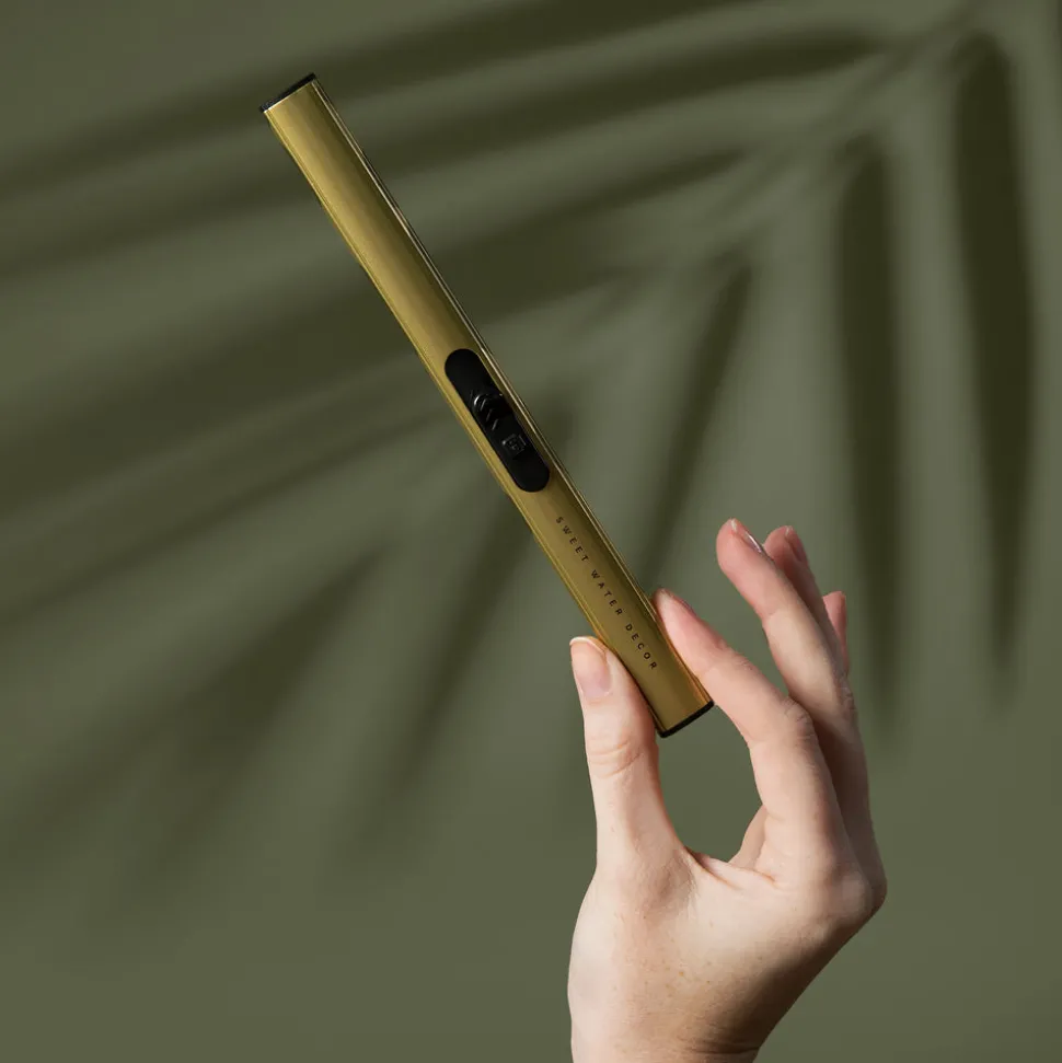 Our rechargeable electric lighter is sleek and modern looking, while also being environmentally friendly. The ultra-thin design and sleek gold finish make this lighter an attractive accessory. In only 1-2 hours, you can fully charge your lighter and it will last for hundreds of uses. Pair it with our signature Sweet Water Decor candles and you have the perfect gift for anyone!
