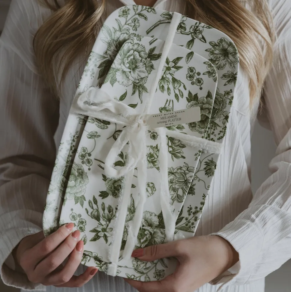 Bring fresh charm to every gathering with our Set of 2 Green Delft Melamine Serving Trays. Featuring a vintage-inspired floral pattern in soft green tones, these lightweight, durable charcuterie trays are perfect for spring brunches, garden parties, or entertaining year-round.