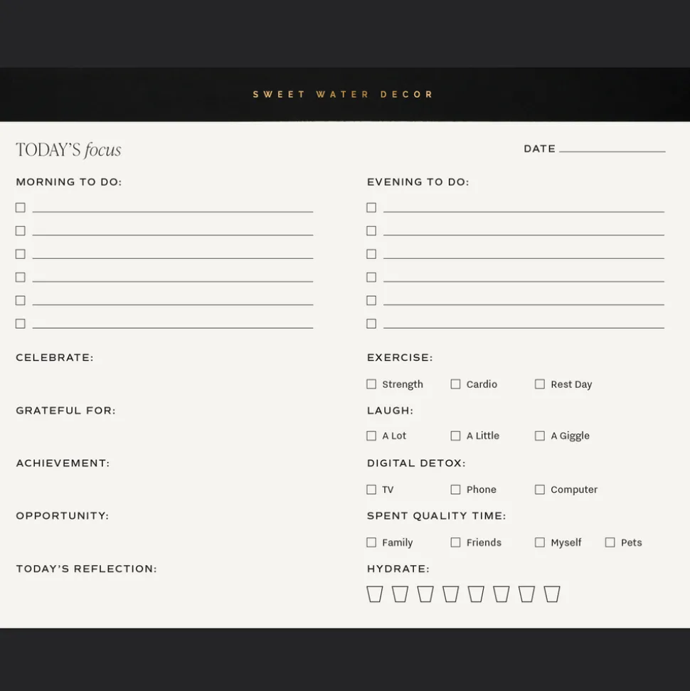 Whether you keep it on your office desk, bedside table, or kitchen counter, this notepad is the perfect blend of productivity and self-care – a simple, elegant way to check in with yourself every day.