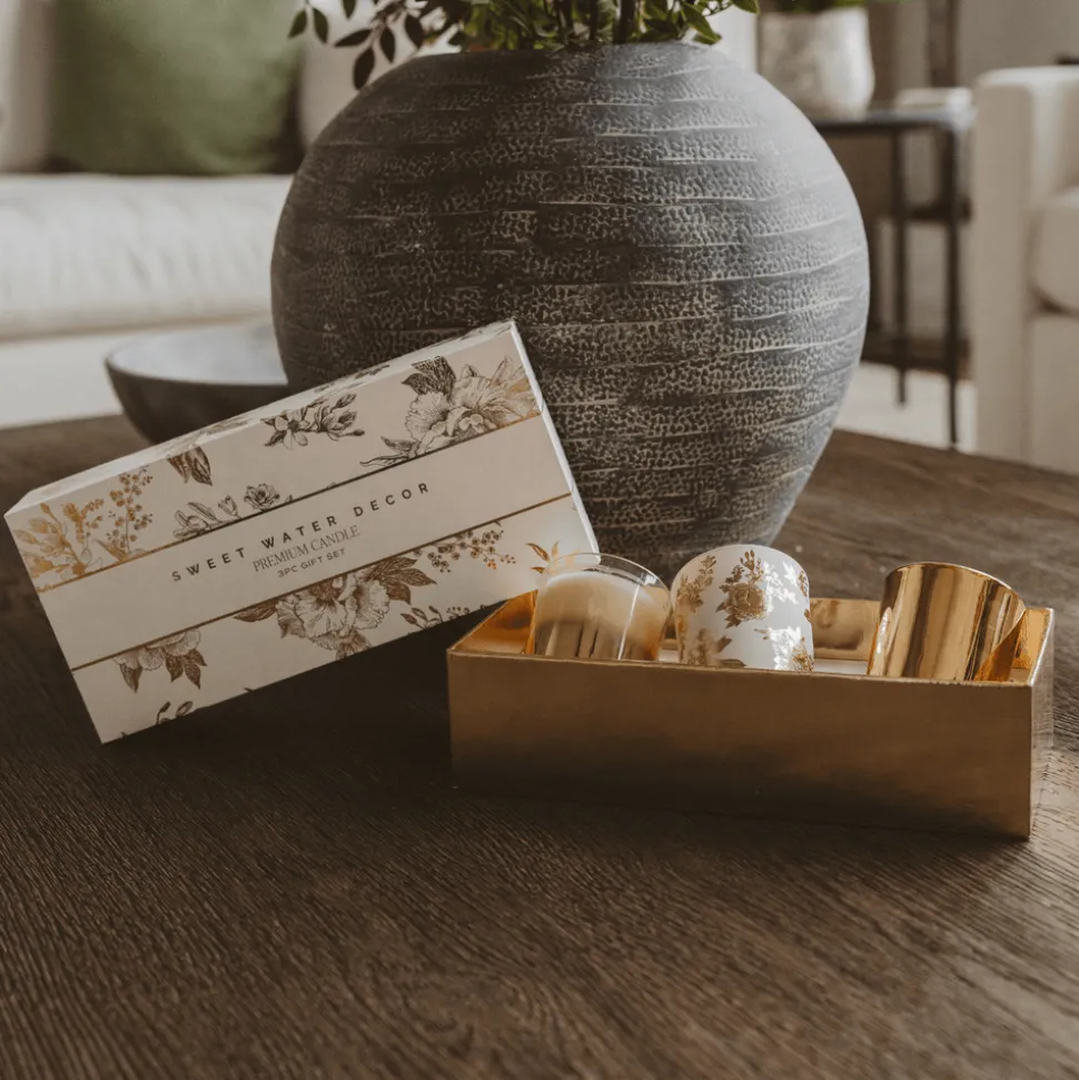 Make every moment feel special with our Spring Candle Gift Set, featuring three of our best-selling fragrances: Salt and Sea, Island Air, and Palo Santo Patchouli. Beautifully presented in a ready-to-gift gold Delft–patterned box, this curated trio arrives luxe, elegant, and effortlessly impressive—no wrapping required.
