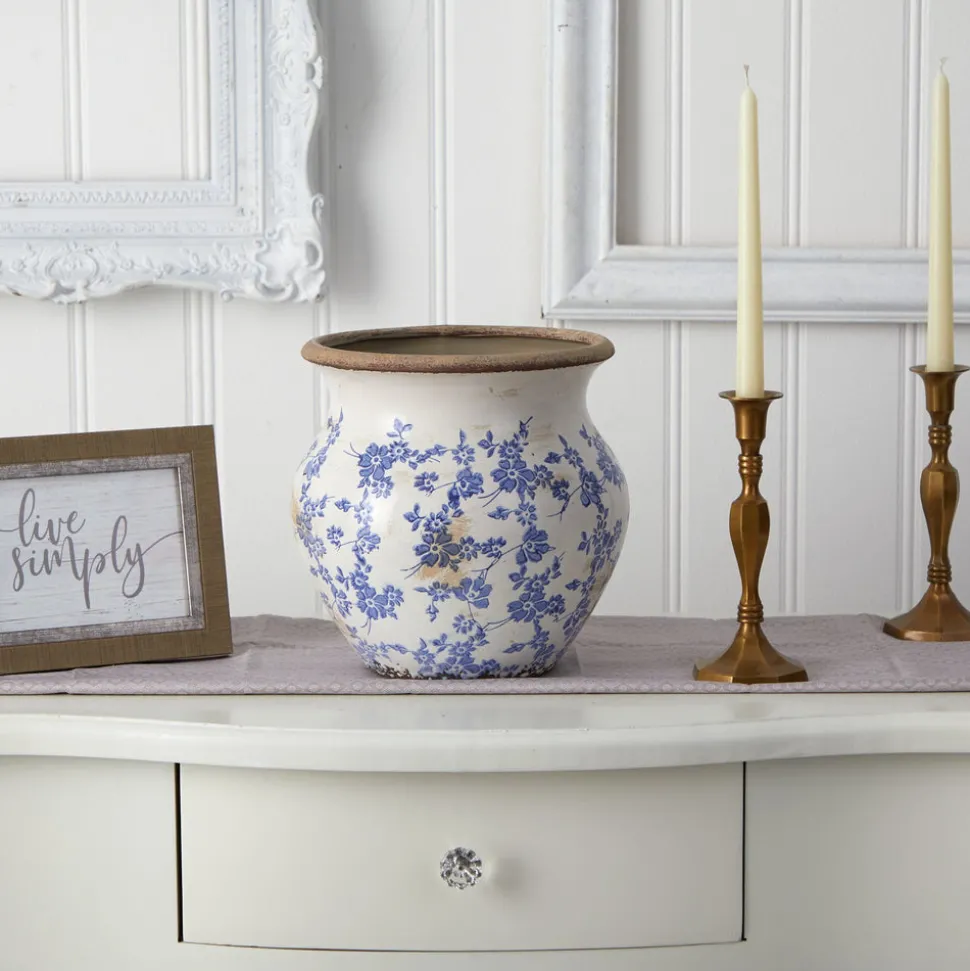 Arrange your fauxbolous flowers in this floral print vase. The vintage ceramic planter has a homey feel with its palette of pinkish flowers against a rugged backdrop. DIY and have fun mix-matching for a country chic look that delivers that fresh farm to home style. No drainage holes and indoor use only.